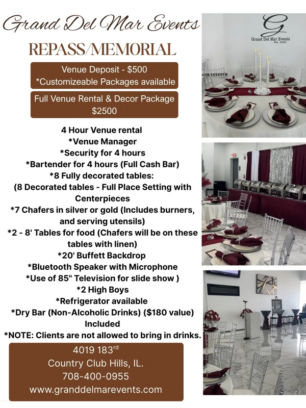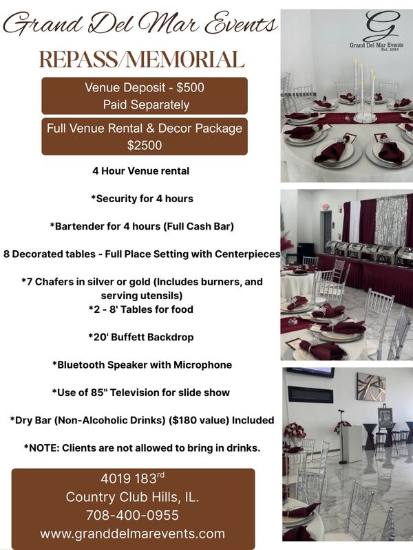 On Behalf of the Grand Del Mar family, we would like to extend our deepest sympathy during your time of loss. We would be honored to host the repass at our location.